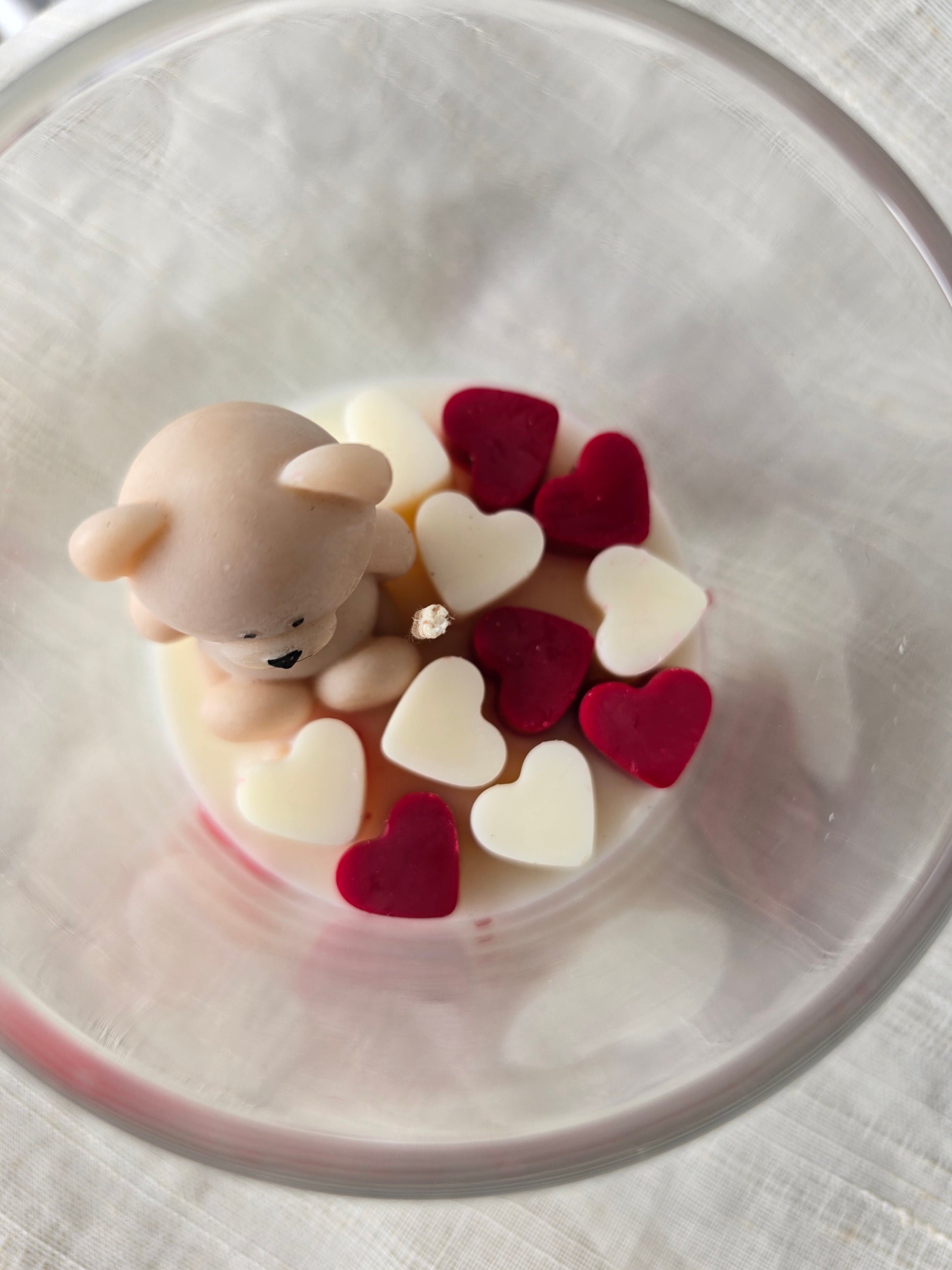 Unique Design: Handcrafted mini wax teddy bear and wax hearts on top.