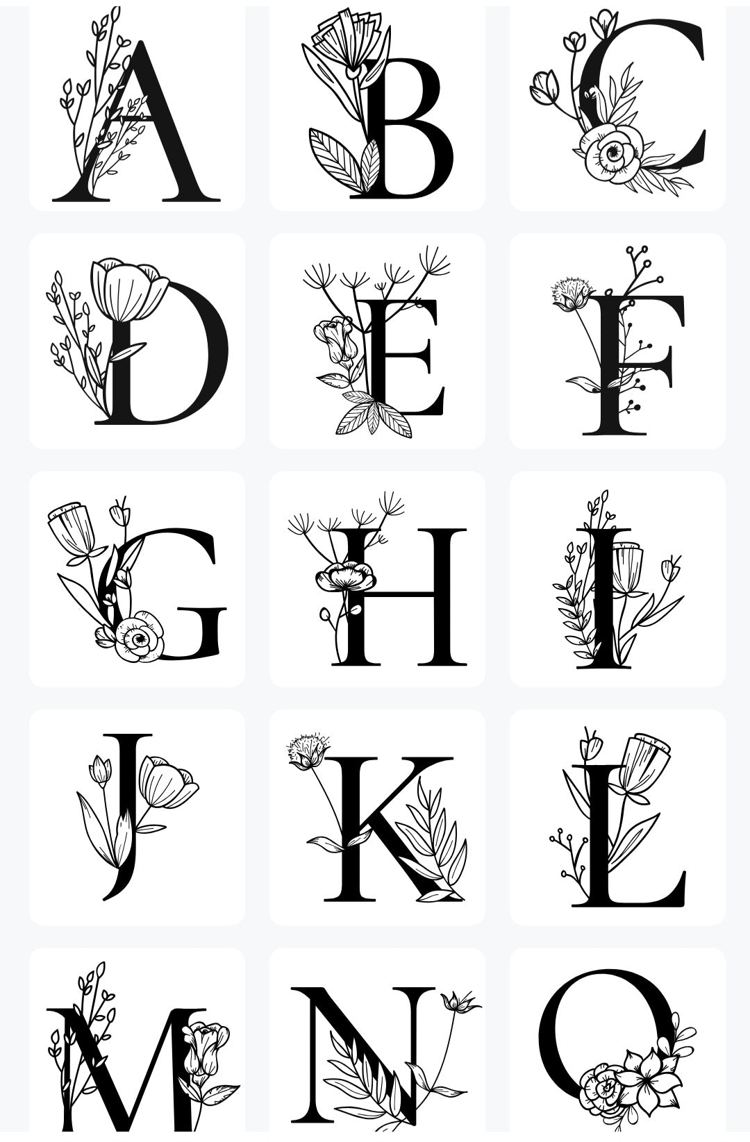 A beautifully detailed floral monogram style featuring elegant botanical line art intertwined with each letter. This design adds a romantic, timeless touch — perfect for gifting, weddings, or keepsakes with a soft and sentimental feel.